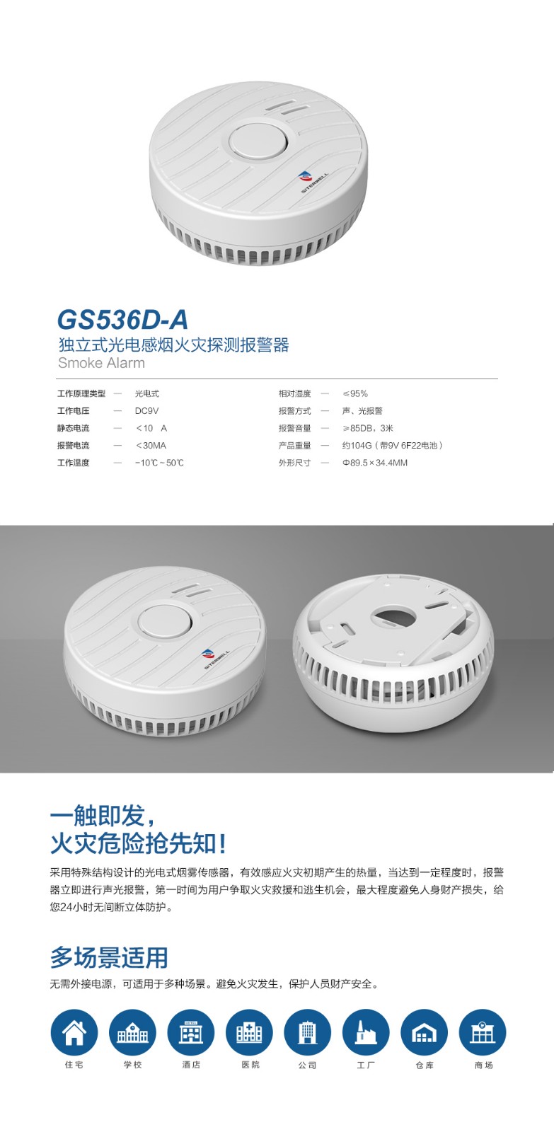 賽特威爾GS536D-A獨(dú)立式光電感煙火災(zāi)探測報(bào)警器