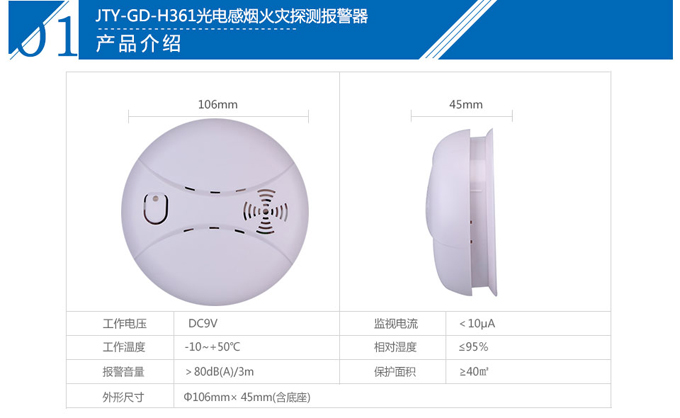 泛海三江JTY-GD-H361獨立式光電感煙火災探測報警器