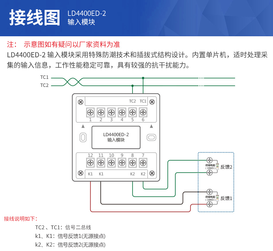 5、LD4400ED-2輸入模塊可檢測(cè)無(wú)源開(kāi)關(guān)接點(diǎn)線(xiàn)路斷線(xiàn)故障。