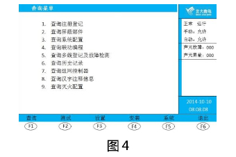 ① 按“功能”鍵,進(jìn)入選項(xiàng)菜單,按“F1 查詢”鍵,輸入二級(jí)密碼,按“確認(rèn)”鍵,進(jìn)入查詢菜單界面(圖4)。