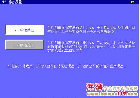 在設置里面進入“6、噴灑設置”界面,輸入氣體操作密碼及更高級別密碼解鎖后,可將控制器設置為噴灑禁止或噴灑允許狀態(tài)。